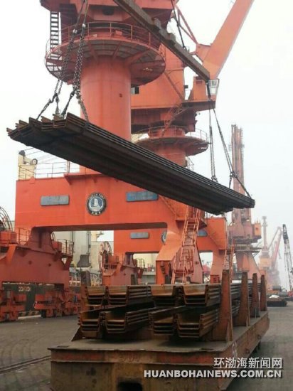 图为津西拉森钢板桩产品在天津新港外贸码头装船。