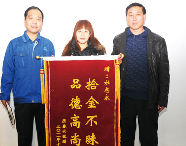 11月21日上午8时,《津西人》编辑部来了两位客人———迁西县白庙子乡八里铺村支部书记周建华和村民梁春云。他们满怀感激地送来一面写有“拾金不昧,品德高尚”八个金色大字的锦旗,并恳请记者对津西股份烧结厂一烧车间主任杜志永拾金不昧的事迹进行表扬。 原来,11月13日下午,家住八里铺村北、紧挨津西炉料的梁春云接到商家要给新居送家电的电话后,立即兴高采烈地拿着钱包,骑上心爱的小型弯梁摩托车赶赴七八里外三屯景忠新城的新家。待电视机、洗衣机、冰箱等一一摆放、安装完毕,梁春云准备付款时,由于天色已黑,商家携款不便,又急着送下一家的货,所以付款只能延后。 送走商家后,梁春云不顾天晚,又兴致勃勃地开始清理安装家电剩下的纸箱、塑料泡沫等杂物,打扫卫生。等一切都收拾完后,天已经完全黑了。 梁春云恋恋不舍地告别新居,将钱包夹在摩托车弯梁下,喜孜孜地驶上回家的路。到家后,她停好摩托车想取钱包时,猛然惊出一身冷汗:弯梁下的钱包竟不知什么时候丢失了!包里除有手机、身份证外,更重要的是还有一张存款单和准备给家电付费的14000多元现金。 这下,梁春云可傻眼了:包里的存款单和现金都是向亲友东挪西借来的,凭着丈夫和自己每月微薄的经济收入,怎么去堵这个新窟窿啊?想到这儿,梁春云的心情跌入了低谷。她强迫自己镇静下来,带着一种侥幸心理,马上又骑车借着车灯顺原路开始寻找。谁料一直找到新家,也没能看到钱包,她失望到了极点。 “不能放弃!”心情低落的梁春云强打精神命令自己,并盼望着奇迹的发生。于是,她又心急火燎地慢慢骑车在返家路上细心寻找着。但一直找到距家20多米的三叔周建中家门口,依然不见钱包踪影。就在她几近绝望时,突然被周建中叫住了:“春云,丢啥了?” “钱包。” “别着急了,我一同事捡着了,该你好命!” “谢谢!谢谢!……”面对从天而降的奇迹,梁春云万分激动。当周建中的同事———津西股份烧结厂一烧车间主任杜志永,将她丢失的钱包交到她手中时,她感动得热泪盈眶不知说什么好,只是一直重复着这两个字。 后来得知,那天晚上,周建中因儿子结婚在家请杜志永等同事吃饭。恰巧杜志永在吃饭时接到一个电话,但因屋内人多噪杂,只得到大门外接听,无意中捡到了梁春云丢失的钱包。为了避免失主着急,接完电话的杜志永回屋后顾不上吃饭,就立即与同事们一起打开钱包,按照身份证、手机号码等线索,确认钱包是梁春云丢的。于是,就发生了文章开头的一幕。 在向记者介绍情况时,周建华和梁春云再三感谢杜志永拾金不昧的高尚品质,感谢津西培养出这样的好员工。 烧结厂厂长张建东得知拾金不昧的事迹后,十分高兴和自豪地向周建华和梁春云介绍说:“杜志永爱岗敬业,求真务实,诚实守信,多次获得公司 “劳动模范”、“十杰青年”、“优秀员工”等荣誉称号,是我厂的优秀中层干部。”
