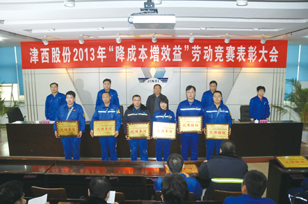 为巩固2013年度“降成本增效益”劳动竞赛成果,表彰先进,12月7日,津西股份在公司七楼大会议室召开“降成本增效益”劳动竞赛表彰大会。公司党委书记、监事会主席、工会主席金小春,党委副书记杨永成,副总经理胥明旺,财务总监张淑敏,总经理助理张春晖出席会议。各单位负责人、获奖者及员工代表100余人参加会议。会议由杨永成主持。