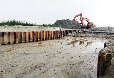 图为津西热轧钢板桩应用于“海峡城”福平大道项目。