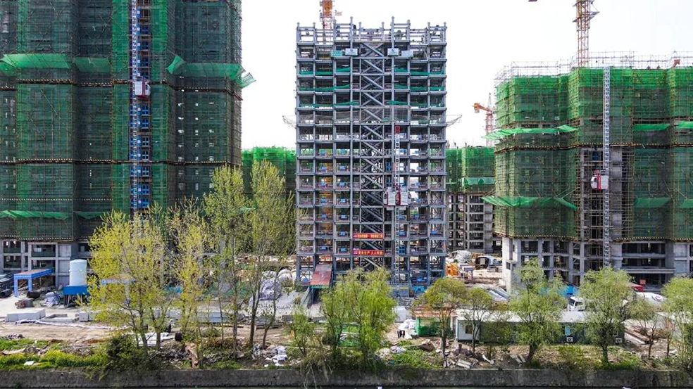 伴随最后一根钢梁安装入位,这栋25层高的钢结构住宅,完成了全部主体结构的施工。2019年,在国家主导下,钢结构装配式建筑开始在民用领域试点,整个建造过程,像搭积木一样,不仅建造速度比钢筋混凝土建筑快,也减少了施工容易产生的各种污染。