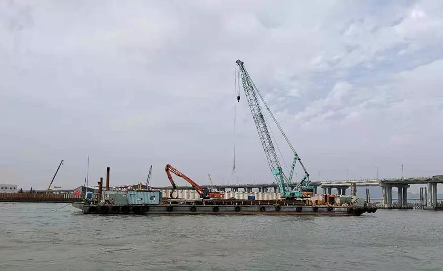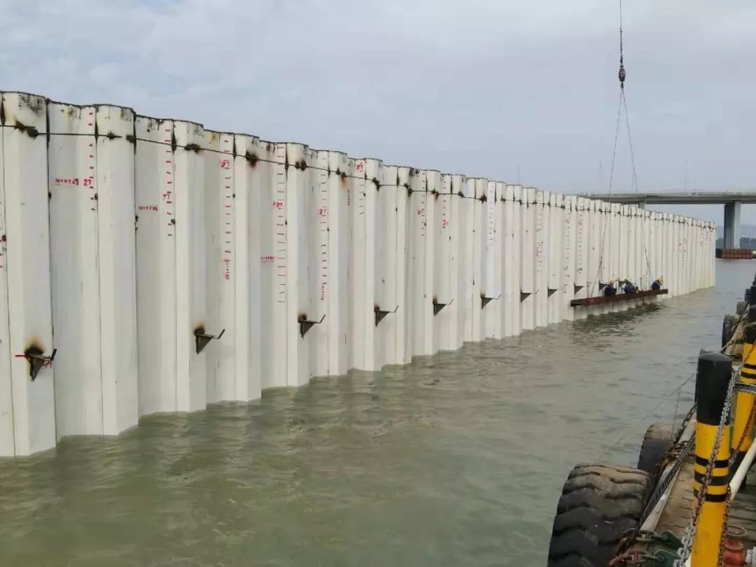 图为“津西”牌拉森钢板桩应用于深中通道人工岛临时堰筑段