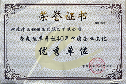 津西荣膺“改革开放40年中国企业文化优秀单位”称号;津西股份副董事长、党委书记、总经理于利峰被授予“改革开放40年中国企业文化十大典范人物”。
